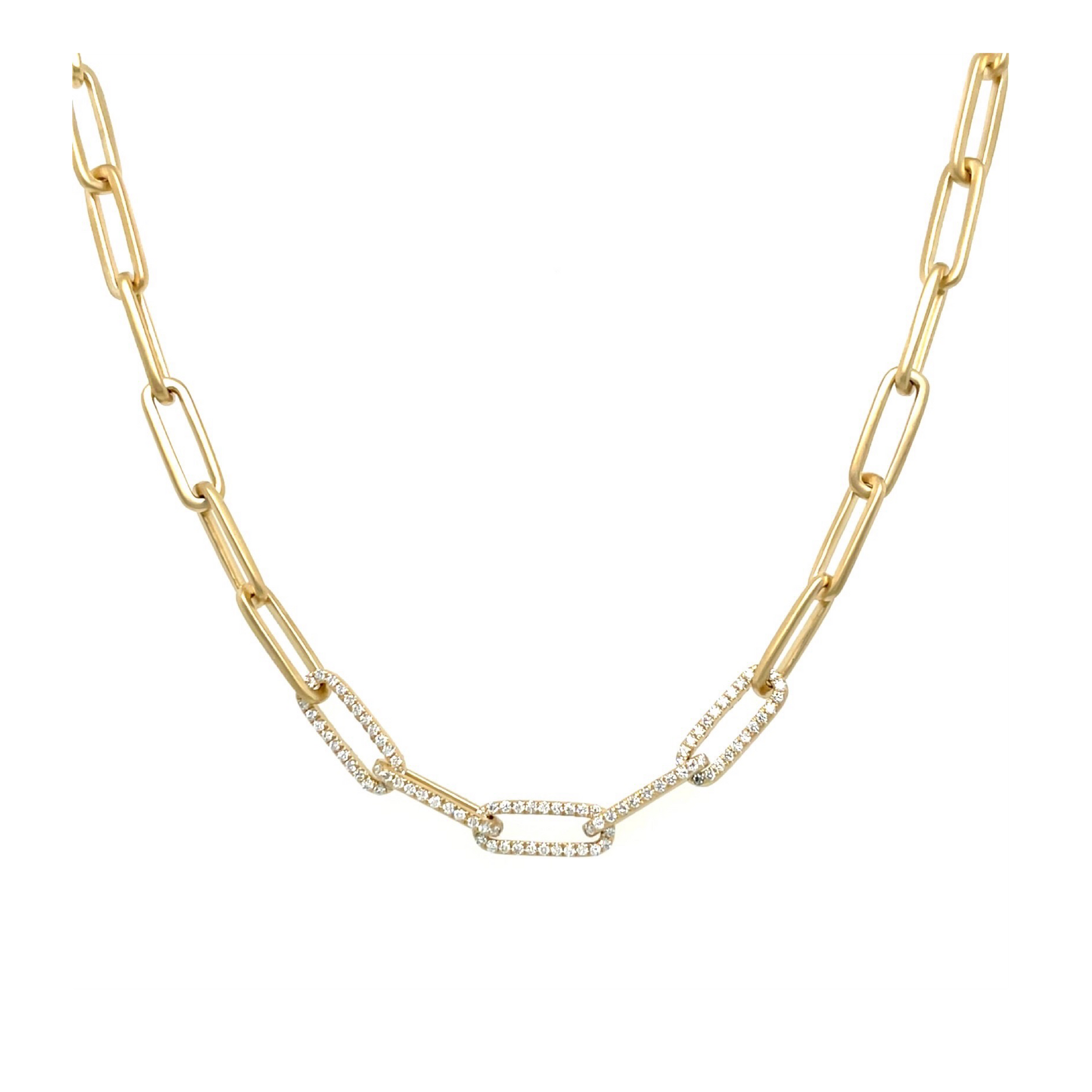 found. Matte Gold Paperclip Chain Necklace with Diamond Links