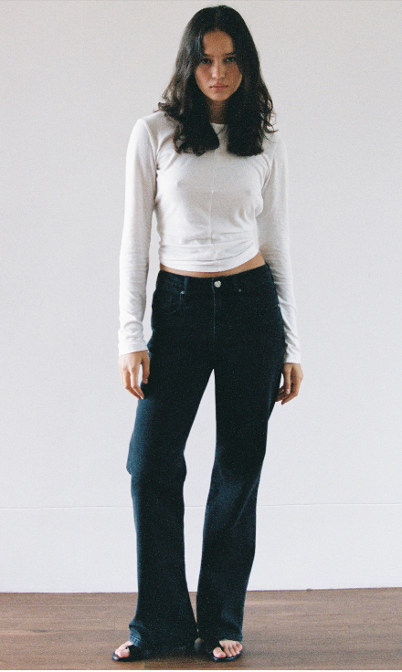 The perfect blend of rise and flare, the Effie jean is the go to for comfort and style. Not to high or low and not too skinny or wide, a great balance for day to night.