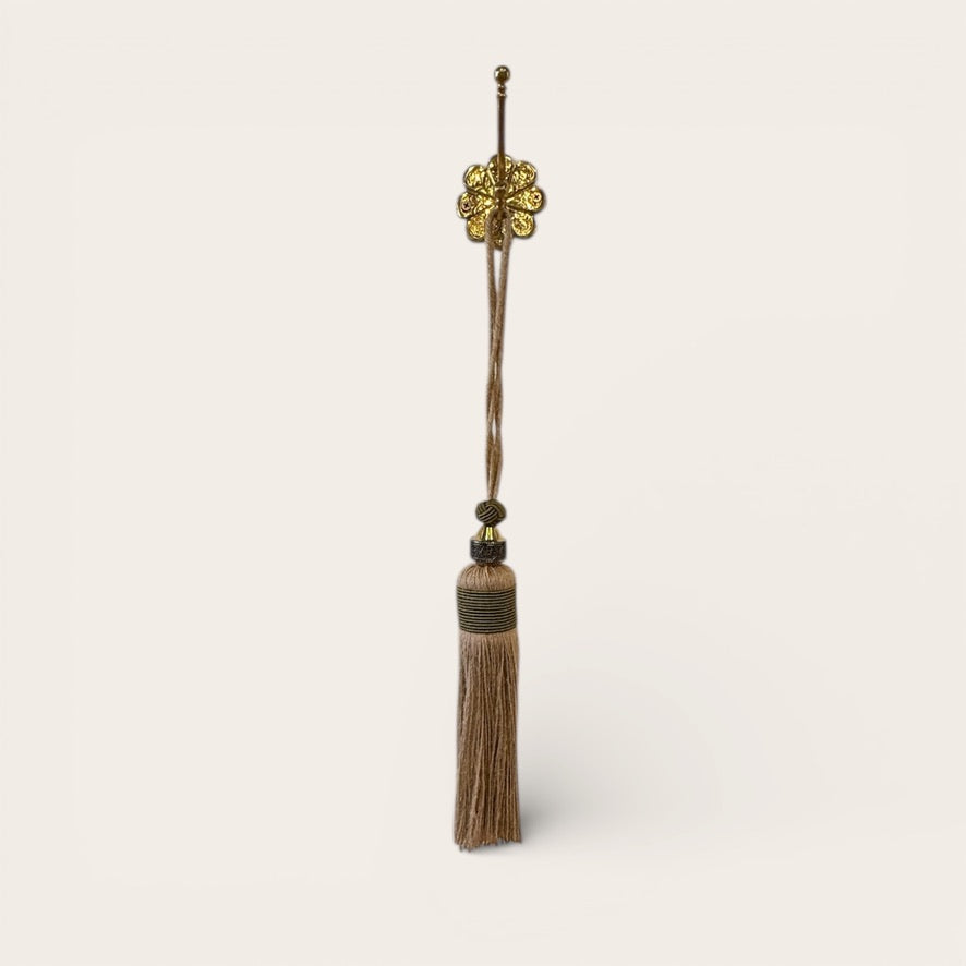 These handmade Moroccan twine tassels are crafted using traditional techniques passed down through generations of artisans. Made from natural fiber twine and finished with hand-applied brass detailing, each tassel is individually wrapped, knotted, and assembled by hand, giving every piece its own subtle variations in texture and form.