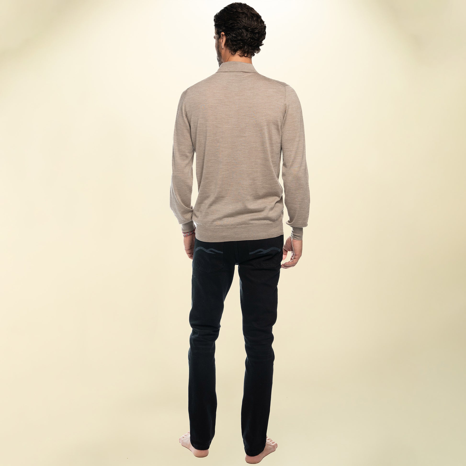 An understated essential crafted from renewed Loro Piana superfine cashmere. Utilizing a clean green dye, removing heavy chemicals that have a negative effect on the earth and the wearer. Exceptionally soft and lightweight, this long-sleeve polo offers a fluid drape and refined warmth, balancing quiet luxury with everyday ease. Thoughtfully renewed, it honors both craftsmanship and conscious design—meant to be worn, lived in, and treasured over time.