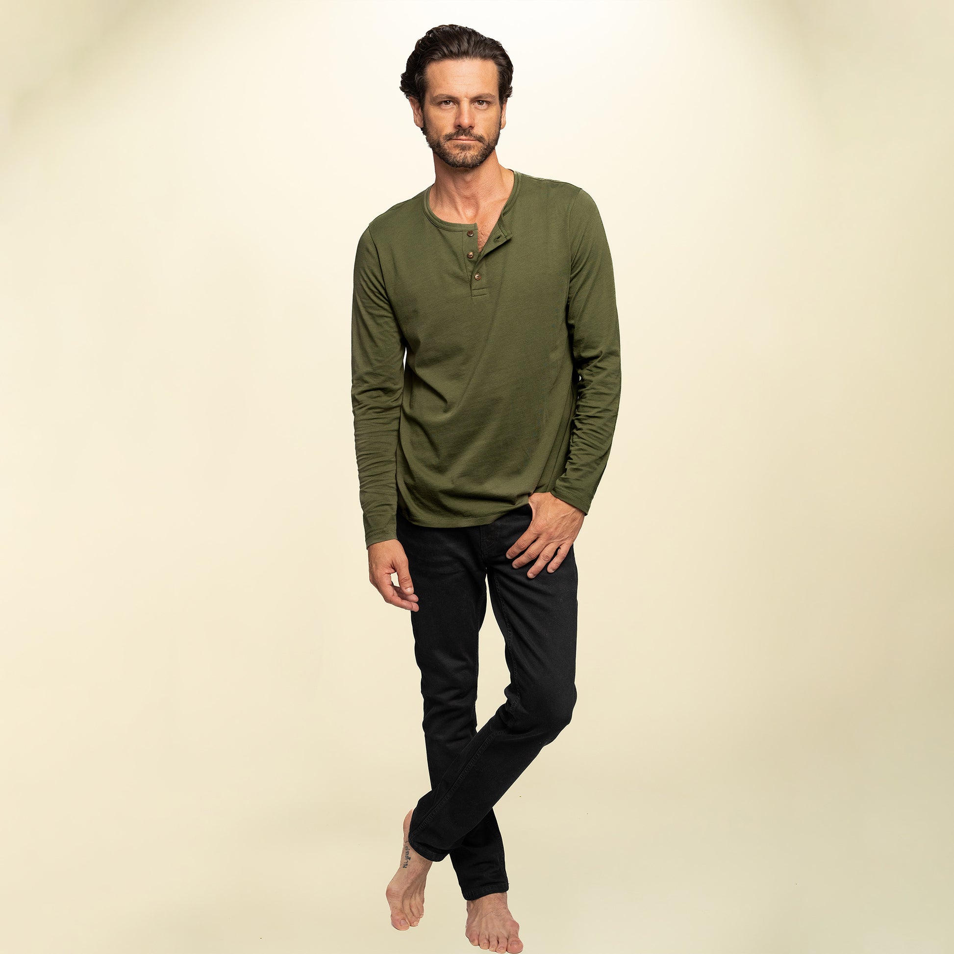 The found men's Long Sleeve Henley is effortlessly laid-back yet polished, featuring coconut button accents and relaxed fit. A minimalist style with an added twist that is effortless, timeless and an updated essential.