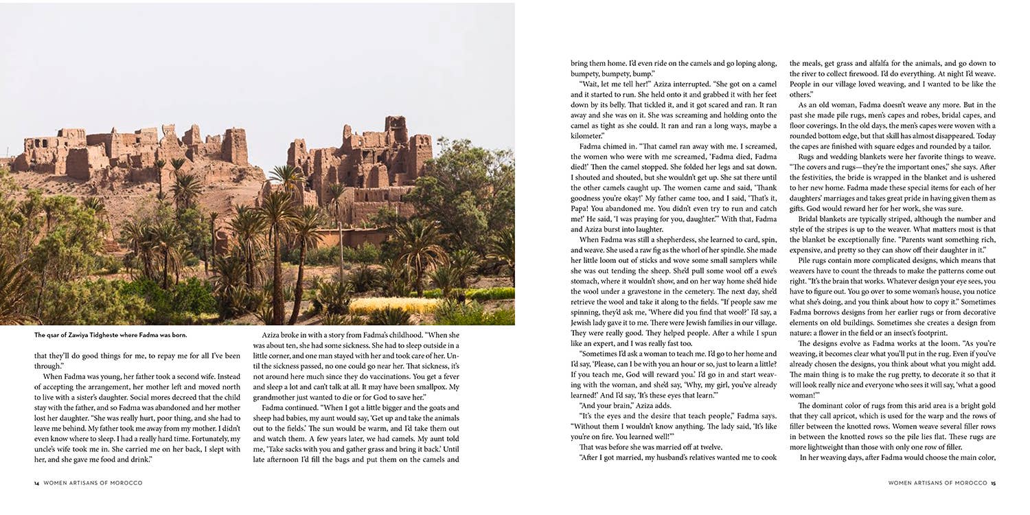 Women Artisans of Morocco tells the stories of twenty-five women who practice these textile traditions with an inspiring energy, pride, and fortitude. For the first time, we have a book that focuses on the artisans of Morocco themselves, those who produce these beautiful textiles that contribute substantially to their family's income while maintaining households and raising children.